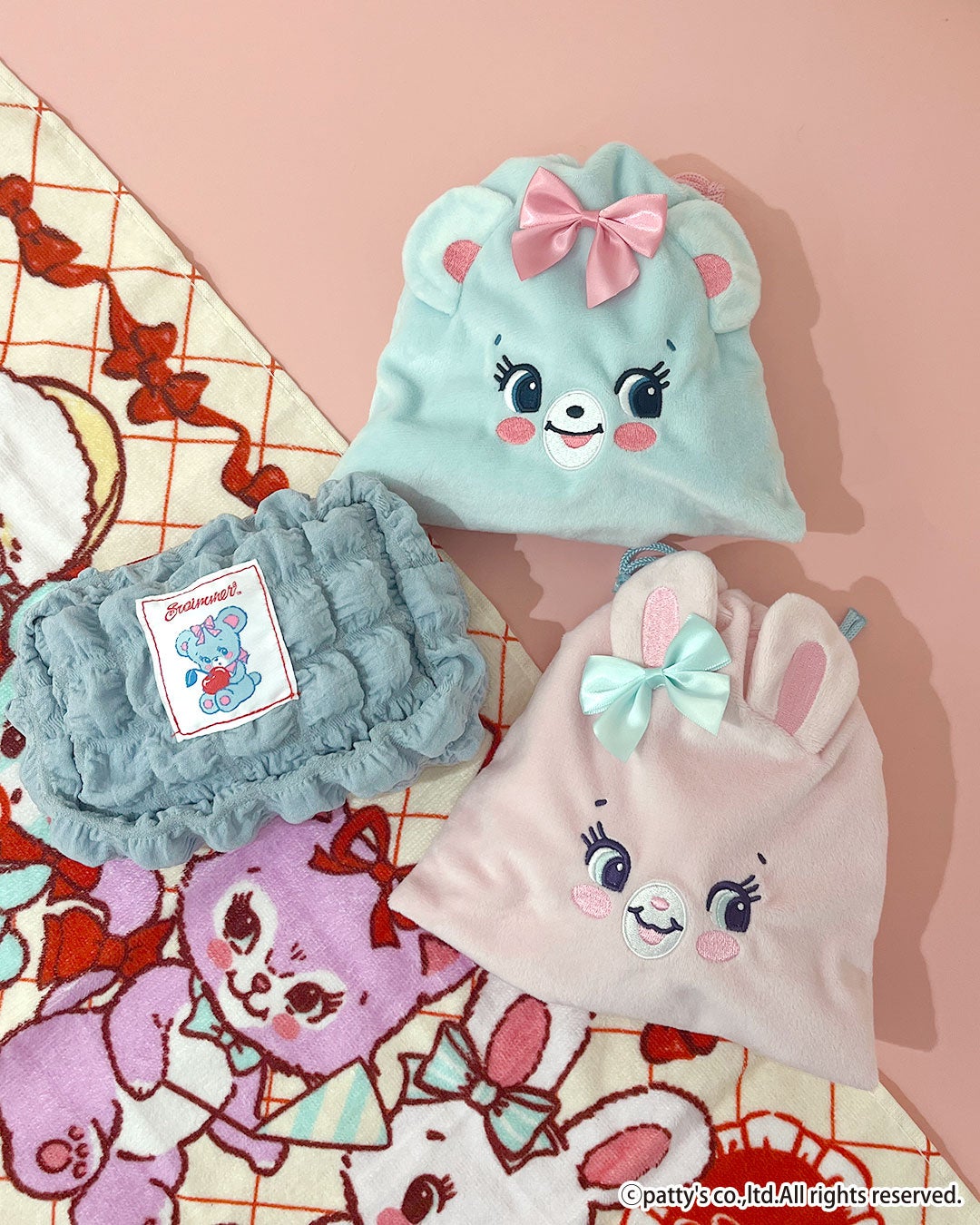 「ふわふわ巾着」はキャラクターをモチーフにした、やさしい手触りが魅力です。
