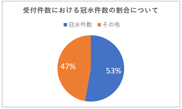 台風15号は9月23日(金)から24日(土)にかけて、東海地方を中心に大きな被害をもたらし、JAFへはドライバーから多くの救援要請がありました。9月23日(金)~9月25日(日)の期間中、静岡県でJAFが受け付けたロードサービス件数は3,901件あり、そのうち冠水に関するロードサービス件数は2,062件と、全体の50%以上を占める割合となりました。