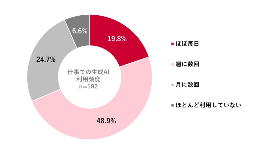 利用ツールは「ChatGPT」が約8割でトップ。仕事での生成AI利用頻度は「ほぼ毎日」が約2割