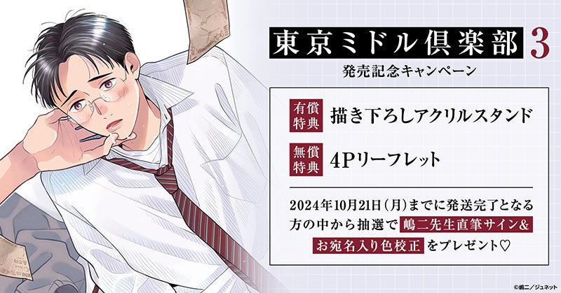 直筆サイン入り色校正が当たる!嶋二先生『東京ミドル倶楽部(3)』発売記念キャンペーン開催!【ホーリンラブブックス】