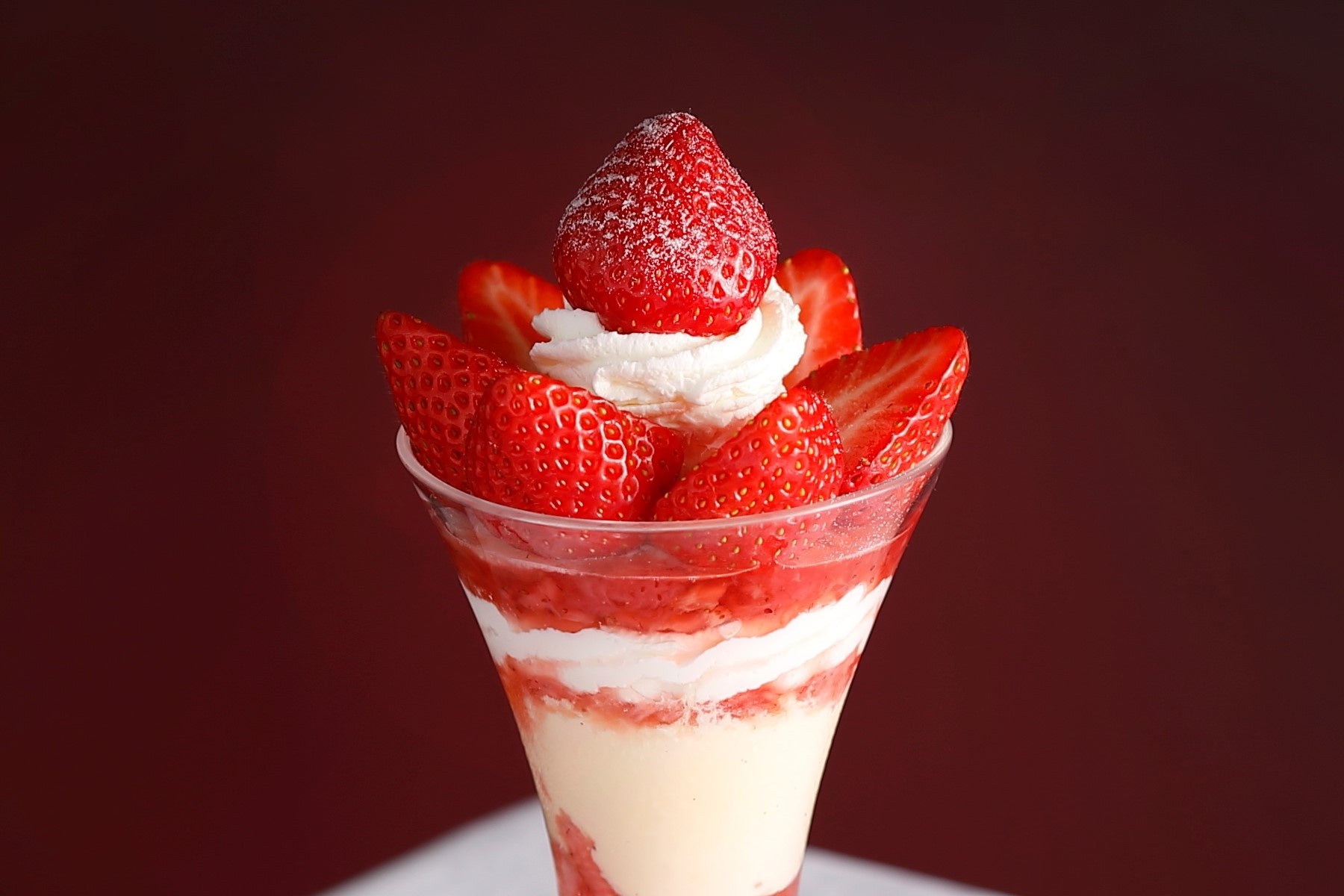 赤く輝くルビーのように色艶が美しい苺“アスカルビー”をソースにも使用したパフェです。