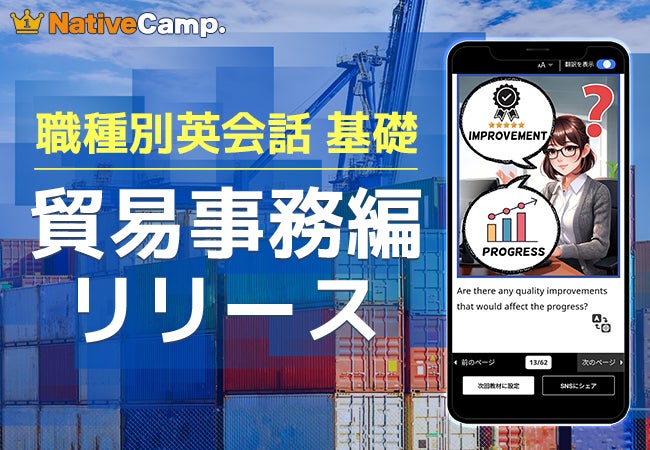 ネイティブスピーカーと回数無制限のオンライン英会話サービス「ネイティブキャンプ英会話」を展開する株式会社ネイティブキャンプ(東京都渋谷区 代表取締役:谷川国洋)は、2025年2月23日(日)より教材「職種別英会話 基礎」に「貿易事務」を追加リリースいたしました。