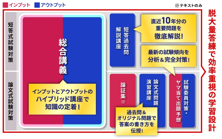 大量の答練の復習は不要。網羅性の高い講義と教材で論文式試験の学習が完結!