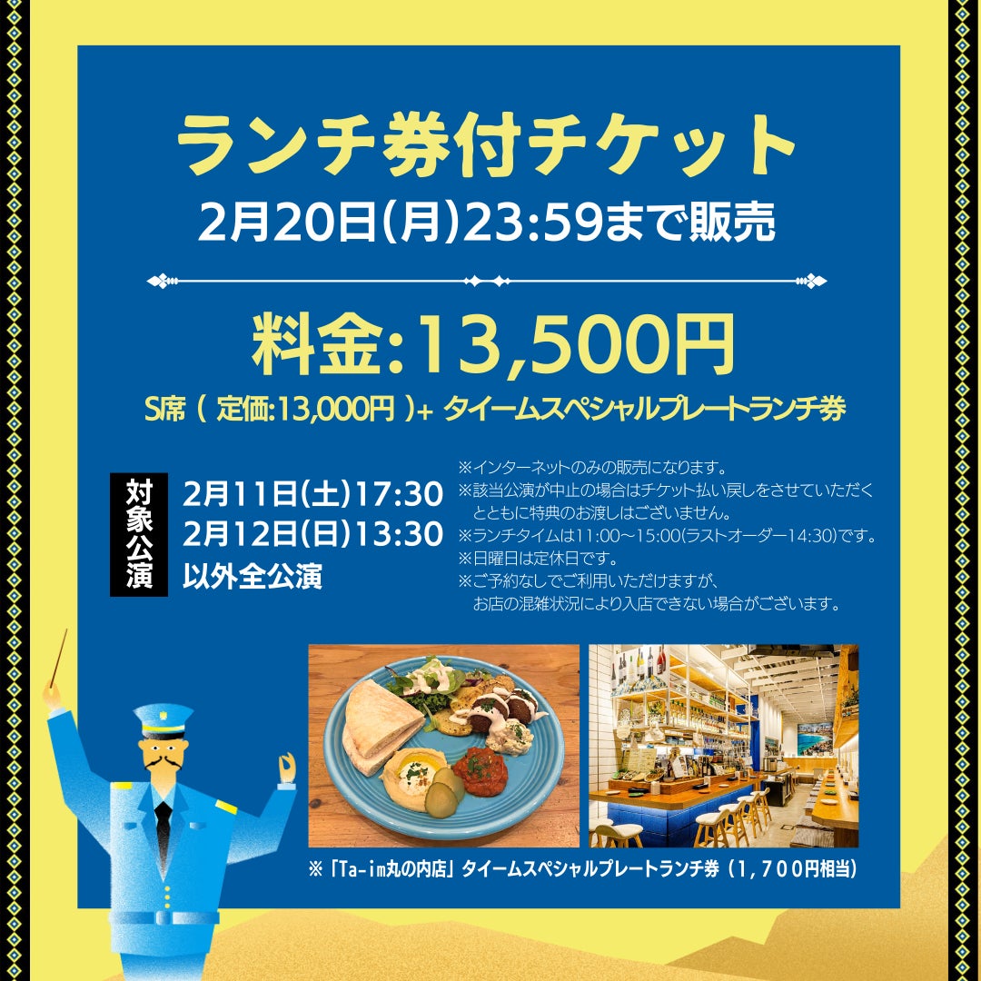 Ta-im丸の内店 タイームスペシャルプレートランチ券付チケット13,500円>>https://horipro-stage.jp/event/bandsvisit20221223/#Link01