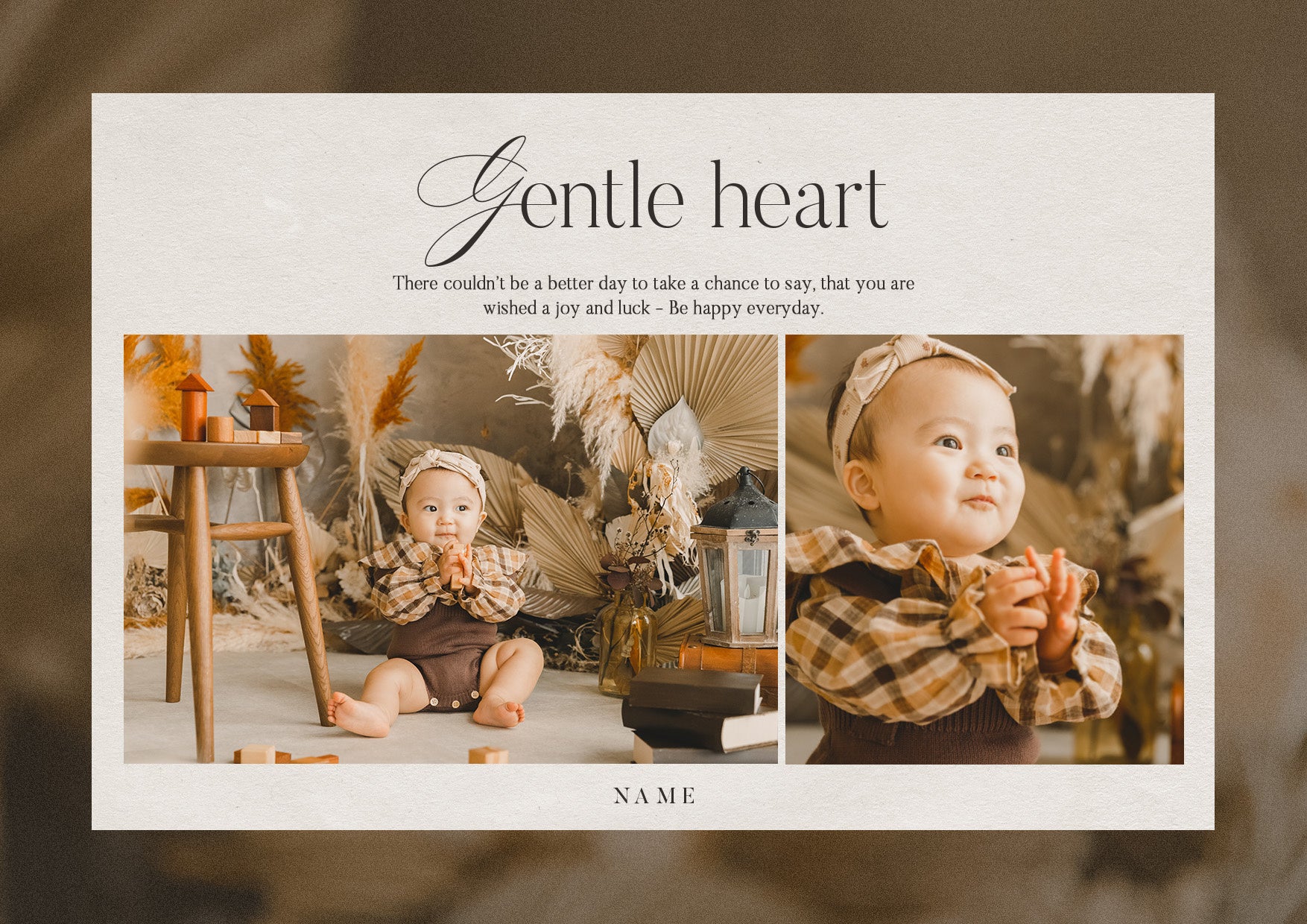 アンティーク調な色合いとレタリングがおしゃれなデザイン。写真を大きく残したい方におすすめです。