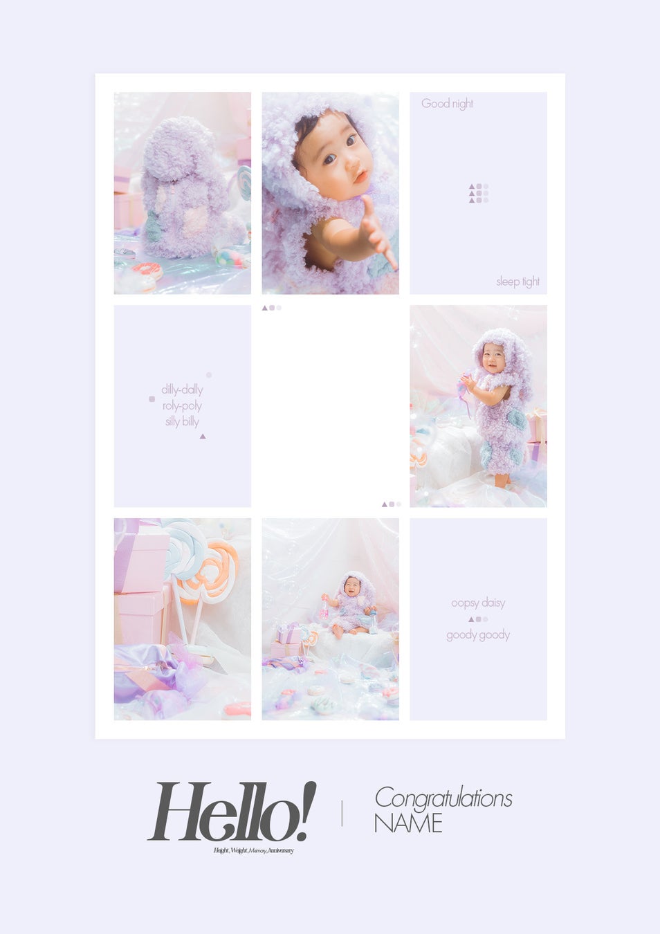 たくさん撮影した写真を残したい方におすすめ。子供らしいお茶目な言葉をたくさん散りばめた、メルヘンなデザイン。色は写真に合わせてデザイナーが変更いたします。