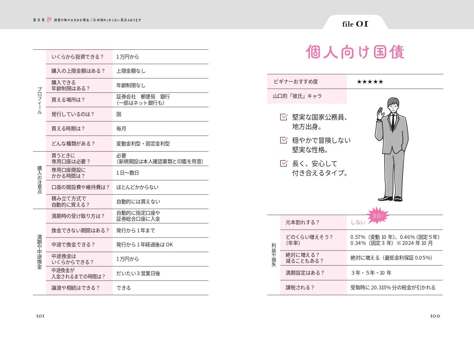 個人向け国債、投資信託、終身保険などを、わかりやすく「彼氏キャラ」で解説しました。