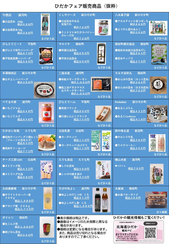 ・北海道どさんこプラザ札幌店で日高産品を1品以上、かつ、合計1,500 円以上購入の方