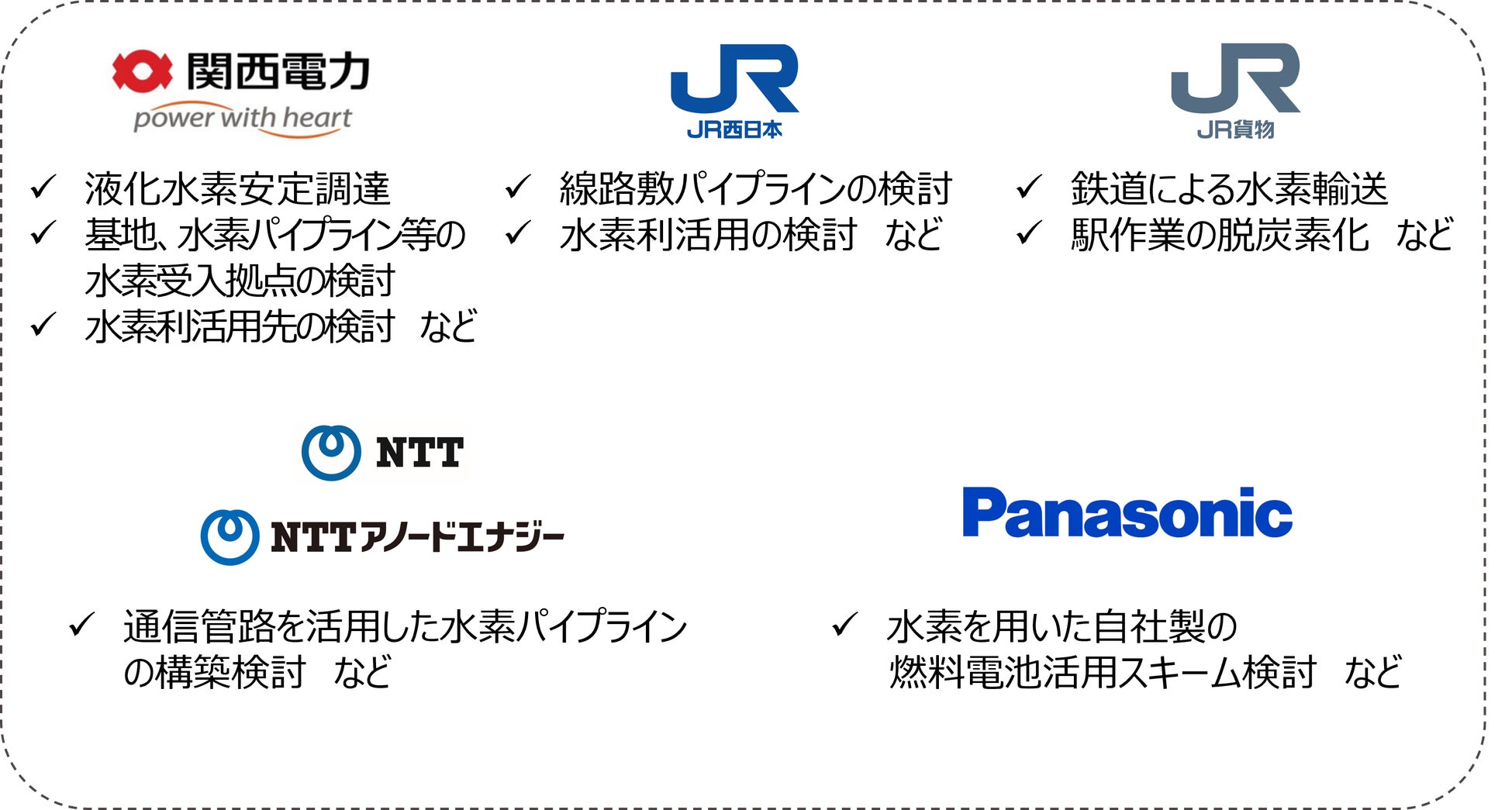 ・関西電力:液化水素の安定調達や水素受入拠点、水素利活用先の検討等