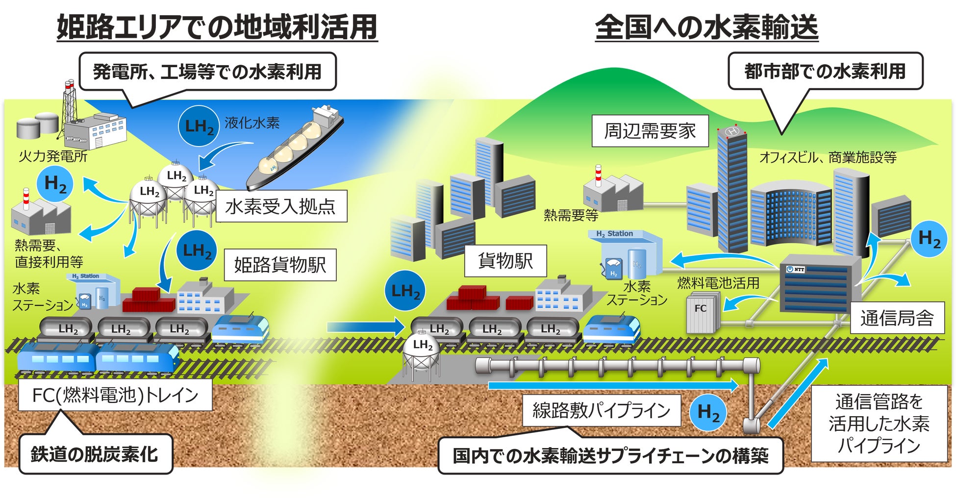 関西電力株式会社(以下、「関西電力」)、西日本旅客鉄道株式会社(以下、「JR西日本」)、日本貨物鉄道株式会社(以下、「JR貨物」)、日本電信電話株式会社(以下、「NTT」)、NTTアノードエナジー株式会社(以下、「NTTアノードエナジー」)、パナソニック株式会社(以下、「パナソニック」)の6社は、11月21日、兵庫県姫路エリアでのインフラを活用した国内水素輸送・利活用等に関する協業の基本合意に至りました。