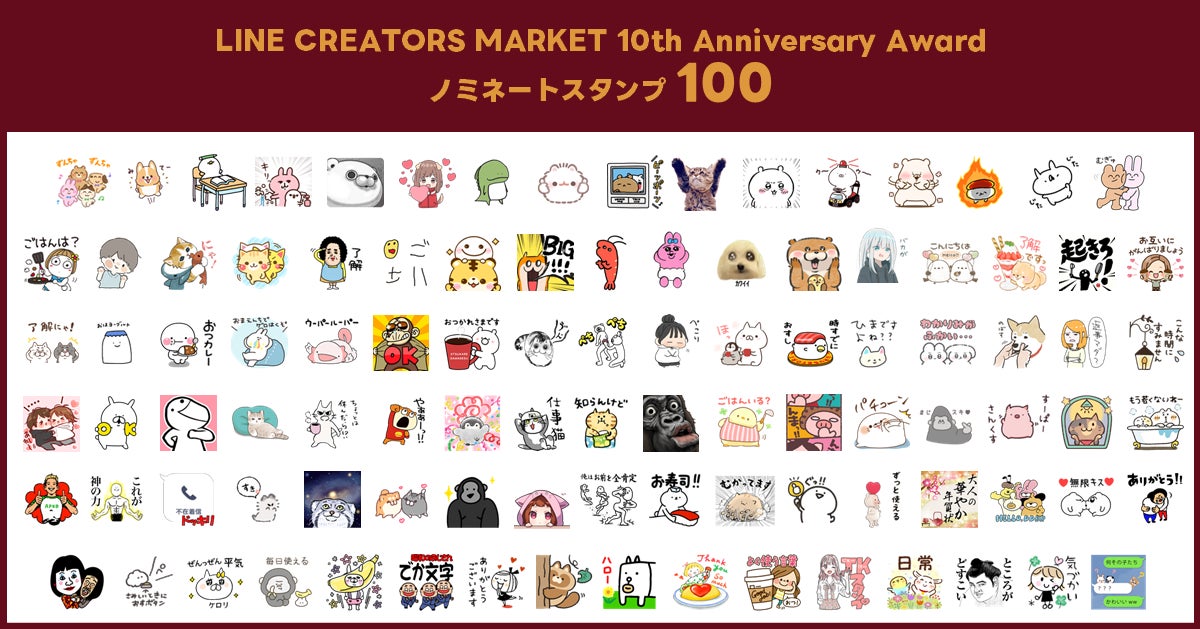 クリエイターとファンをつなぎ、10年で2,300万パッケージ以上のLINEスタンプが誕生!ノミネート作品を公開、ユーザー投票で10年間を彩ったスタンプを表彰