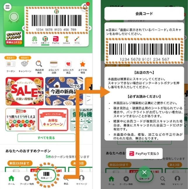 セブン‐イレブンアプリの会員コード取得方法