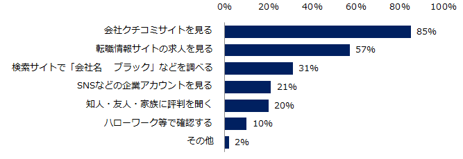 【図9】転職活動の企業選びの際、「ブラック・ゆるブラック・ホワイト」など企業の情報や評判を「気にする」と回答した方に伺います。情報や評判の探し方を教えてください。(複数回答可)