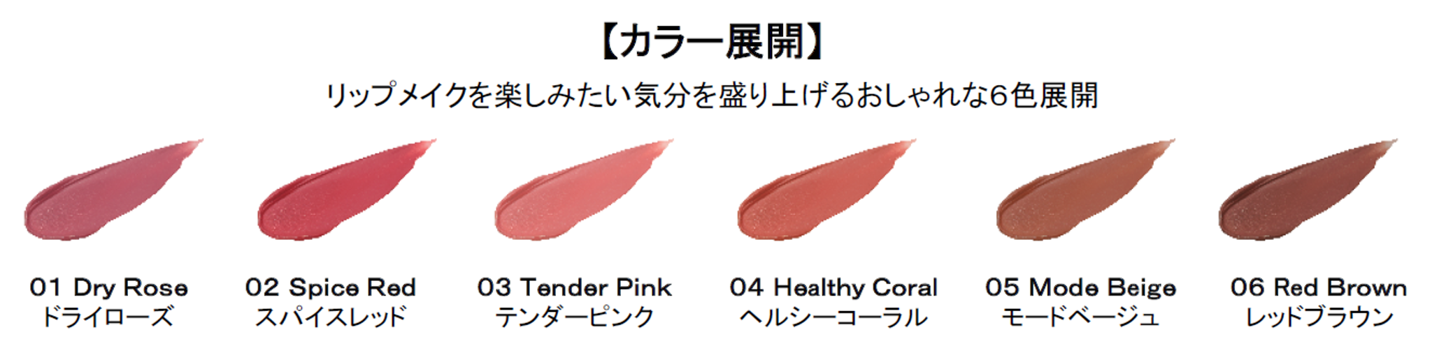 なめらかなつけ心地で唇にフィットし、縦ジワが目立たず、きれいに発色します。