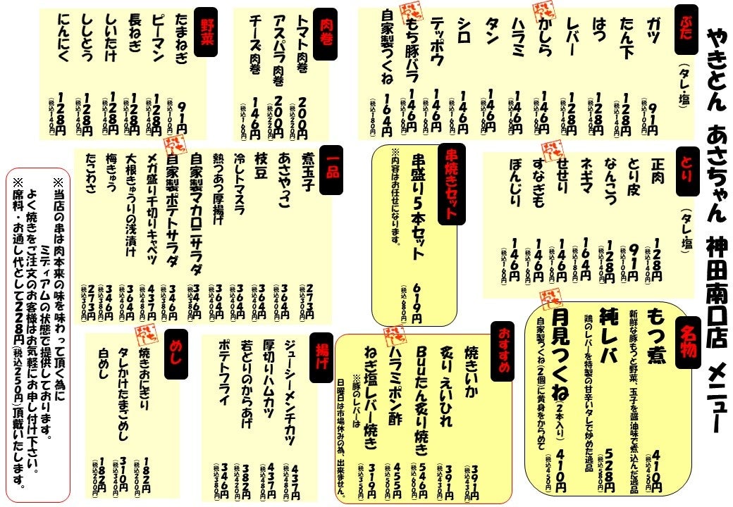≪やきとん あさちゃん 神田南口店のメニュー≫