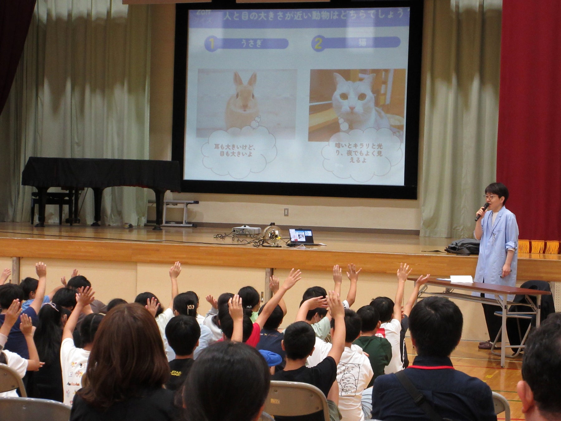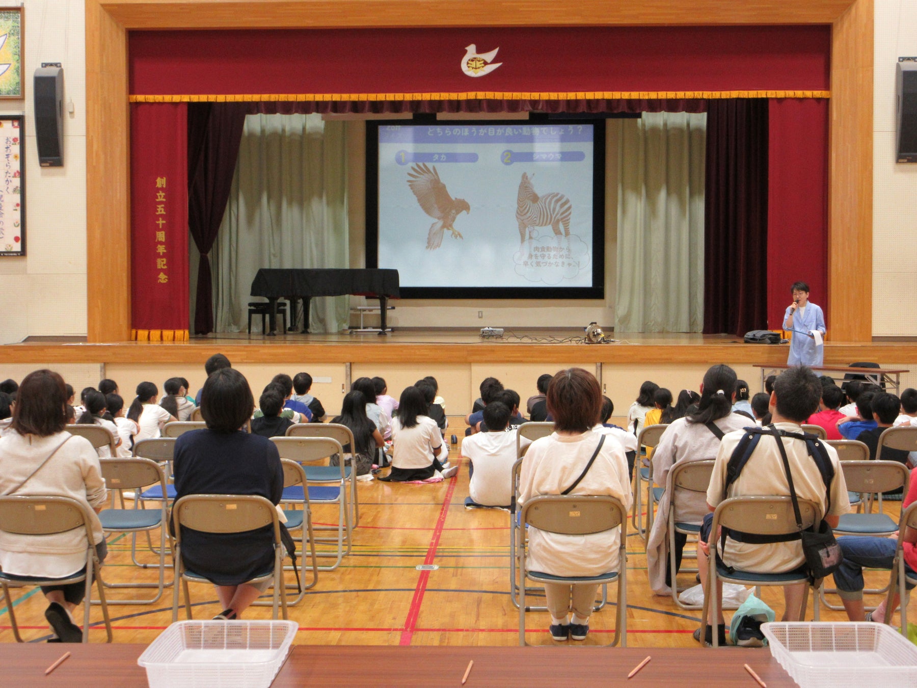「クイズが多く、子ども達も理由を考えながら、集中して話が聞けていたと思います。記憶に残って、意識して生活する、良いきっかけになりそうな授業でした。質問で、ゲーム等で目がチカチカする理由も理解できたと思うので、生活の中で気をつけて楽しんでほしいと思いました。」