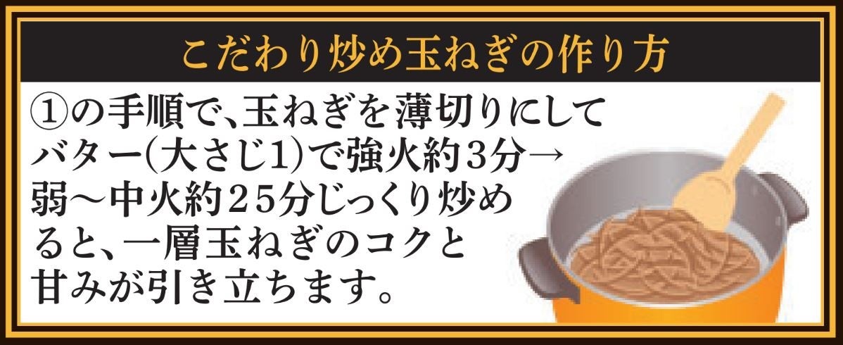 ③カレーをさらにおいしくする、こだわり炒め玉ねぎの作り方を紹介しています。