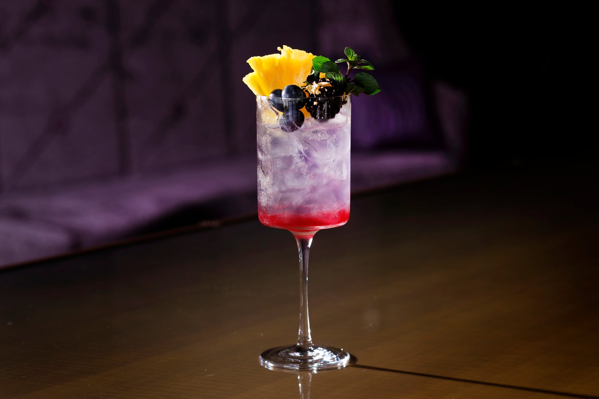 「BAR S」オリジナルカクテル“S(エス)”を、クラシックスタイルであるコブラースタイルにしました。「BAR S」のイメージカラーでもある紫色が美しいカクテルです。