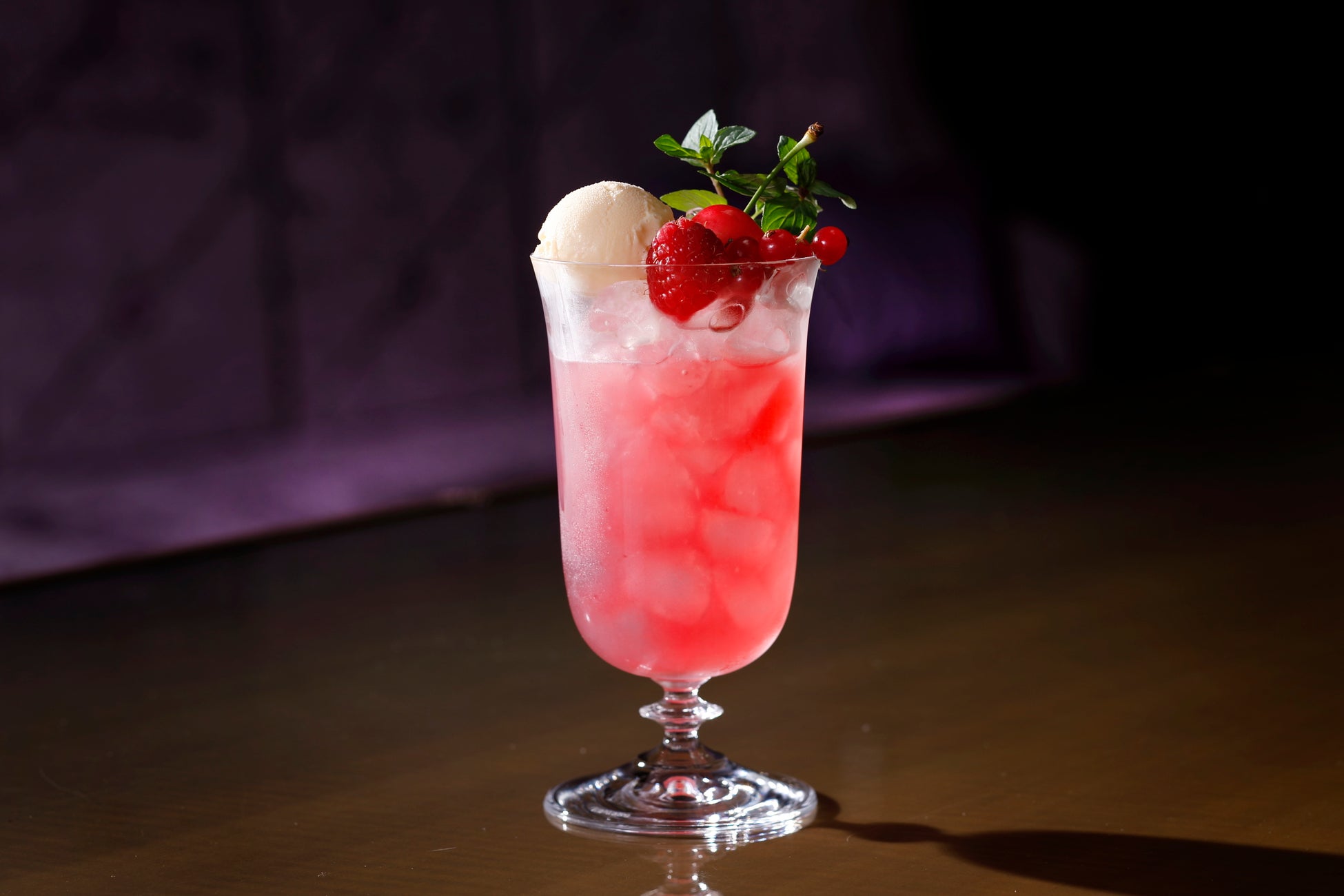チェリーやクランベリーの味わいが楽しめるカクテルにアイスクリームを浮かべています。
