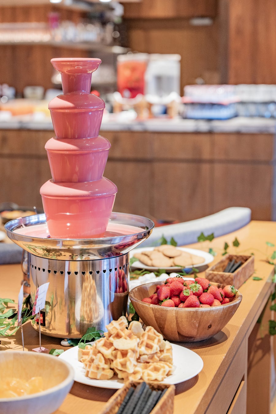 前回好評だったチョコファウンテンが今回も登場。甘い香りに包まれながらチョコレートをディップし、さらにデコレーションまで楽しめる注目のコンテンツ。