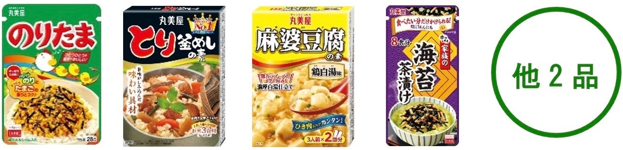 ※のりたまN.P.、とり釜めしの素、麻婆豆腐の素<鶏白湯味>、家族の海苔茶漬け、他2品