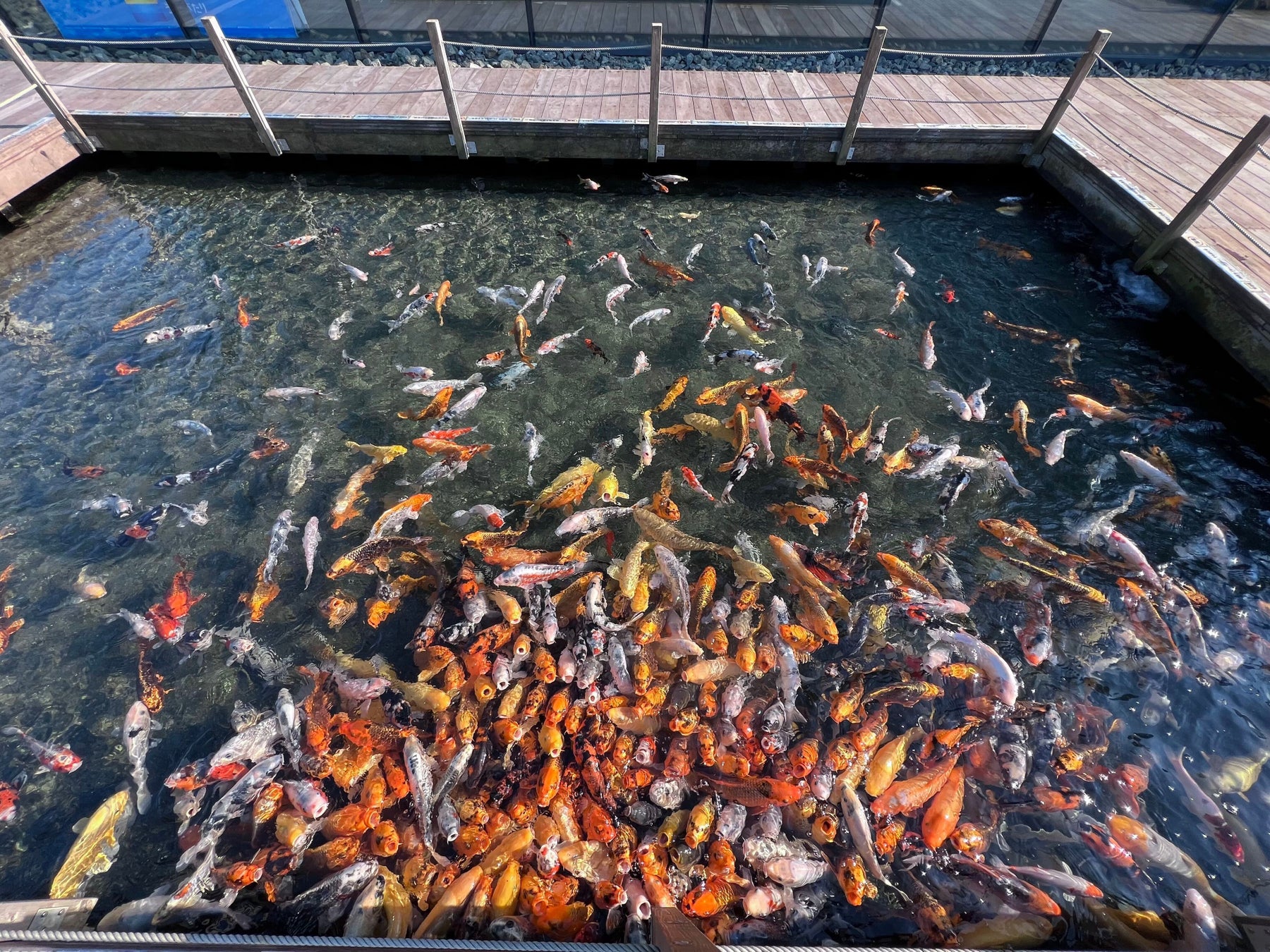 『うみがたり』で大人気のえさやり体験です。新潟県が誇る彩り鮮やかな観賞魚「ニシキゴイ」にエサをあげられます。一斉に集まる体験は唯一無二。お子さまから大人までお楽しみいただけます。