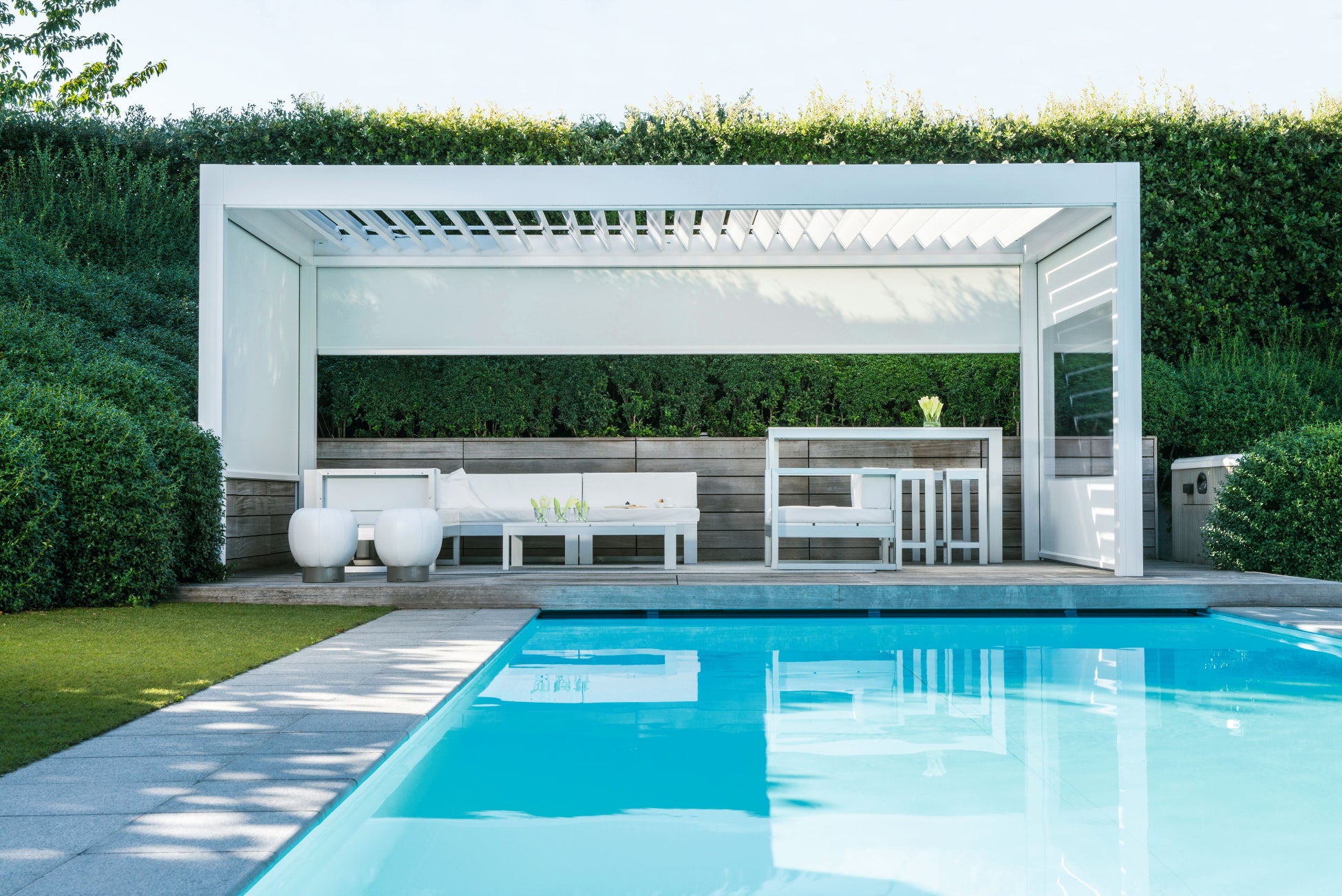 「GARDEN ANNEX」は、屋根ルーバーが電動で開閉することで、「空」とつながる非日常感を得られるだけでなく、ルーバーを閉めた状態では1時間に100mm以上の豪雨もしのぐ優れた雨覆いにもなります。また、ナイトシーンを優雅に演出するLED照明などの洗練された機能とデザインで、高質な住空間を提供するガーデンエクステリア製品です。