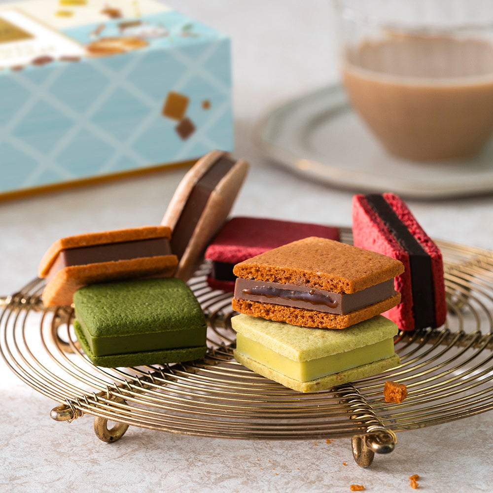 サクッと焼き上げたサブレでなめらかなチョコレートガナッシュをサンドし、限定フレーバー「ソルティーキャラメル」を中心に5種類のサブレを詰め合わせました。
