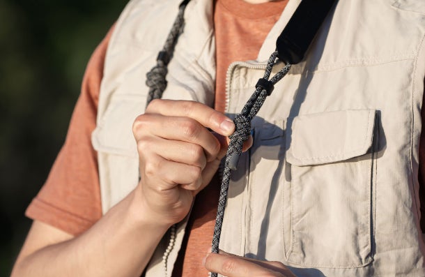 片側のコネクターをTPU吊り下げループに通せば、カメラを外した後もストラップを身につけたままにできるので、ストラップを収納したり探したりする手間はありません。