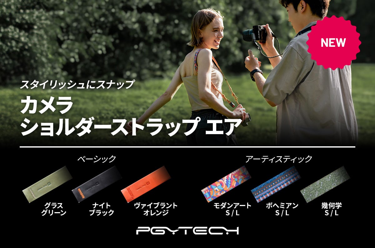 スタイリッシュなデザインと軽いつけ心地で、夏の撮影を快適に楽しめる「PGYTECH カメラショルダーストラップ エア」が7月23日(火)より新登場