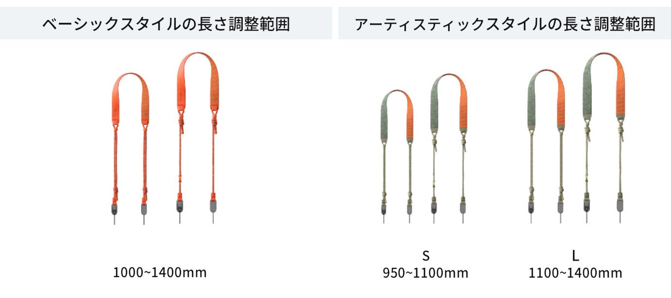 長さ調整 | ベーシックスタイル 1000~1400mm アーティスティックスタイル S:950~1100mm/L:1100~1400mm |