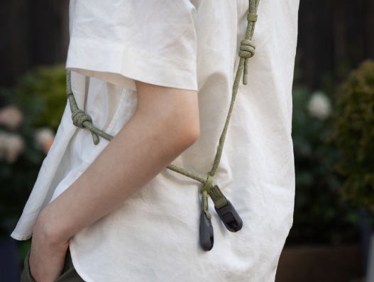 両側結び目を引っ張るだけで、ストラップの長さを簡単に調整できます。