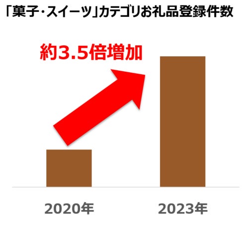 「菓子・スイーツ」のお礼品登録件数は3年前と比較し約3.5倍に増加!