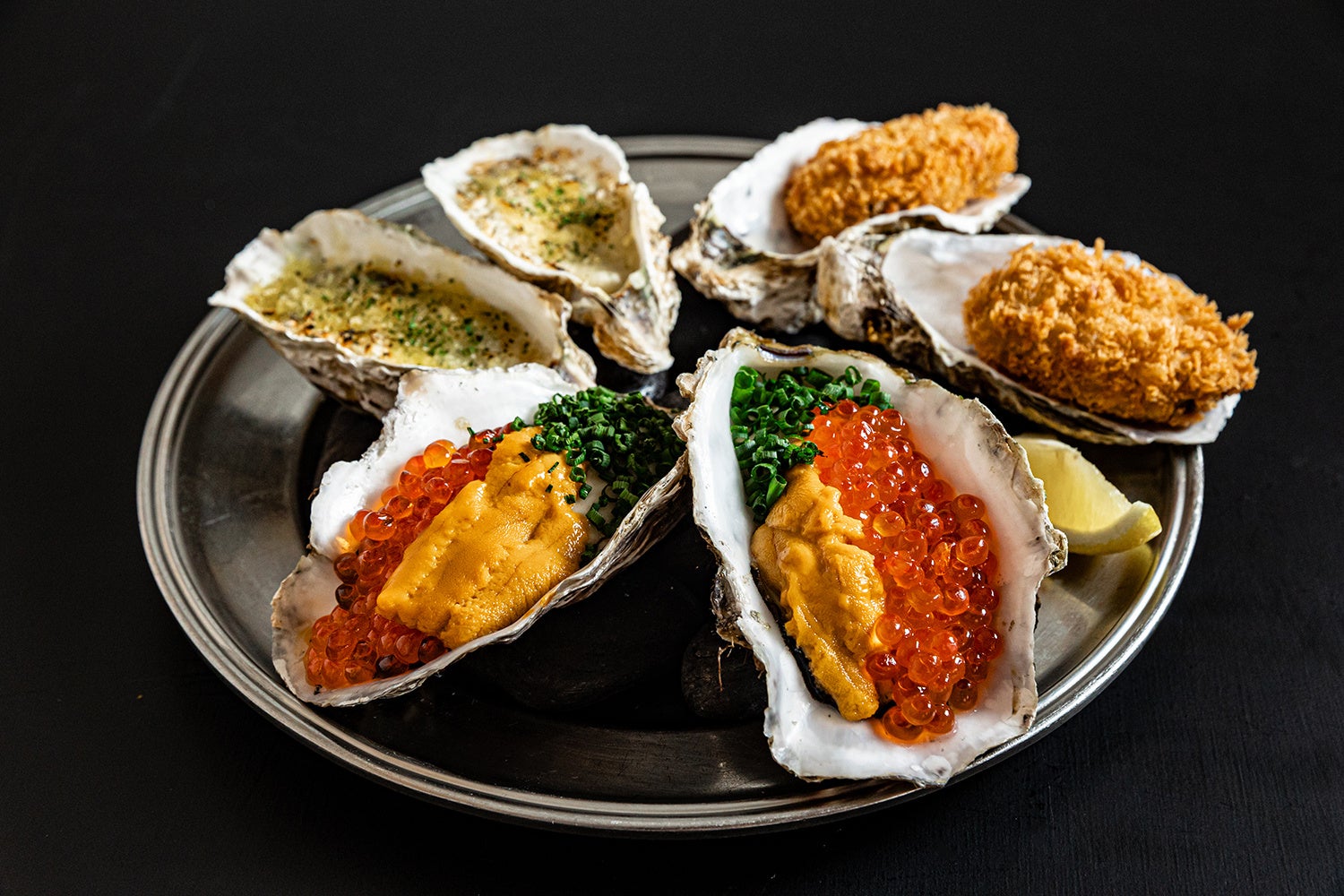 雲丹とイクラの贅沢生牡蠣と生牡蠣の2種食べ比べ