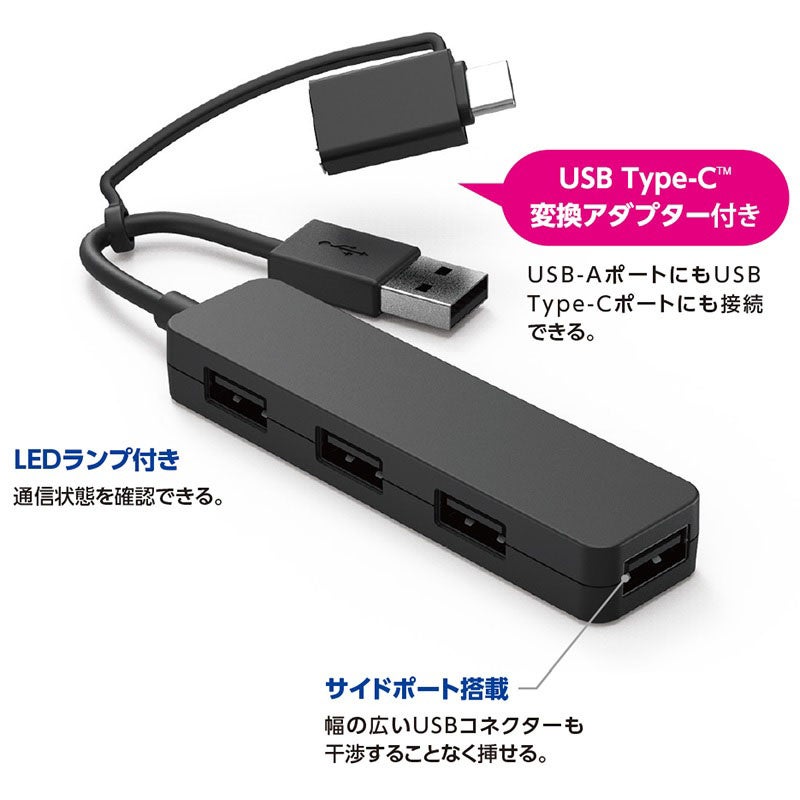 <U2H-CA4003BBK USB Type-C(TM)変換アダプター付き USB2.0ハブ>