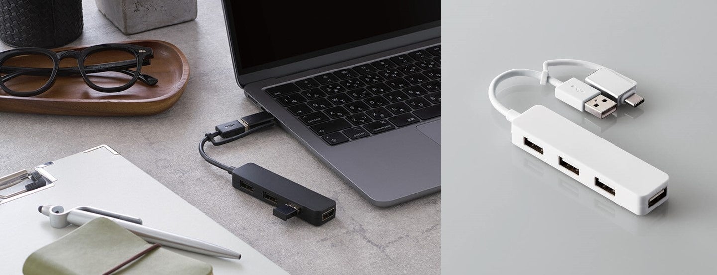 USB-AポートでもUSB-Cポートでも接続できる!変換アダプターを装備したUSBハブ、USB2.0対応とUSB 5Gbps対応の3モデルを新発売