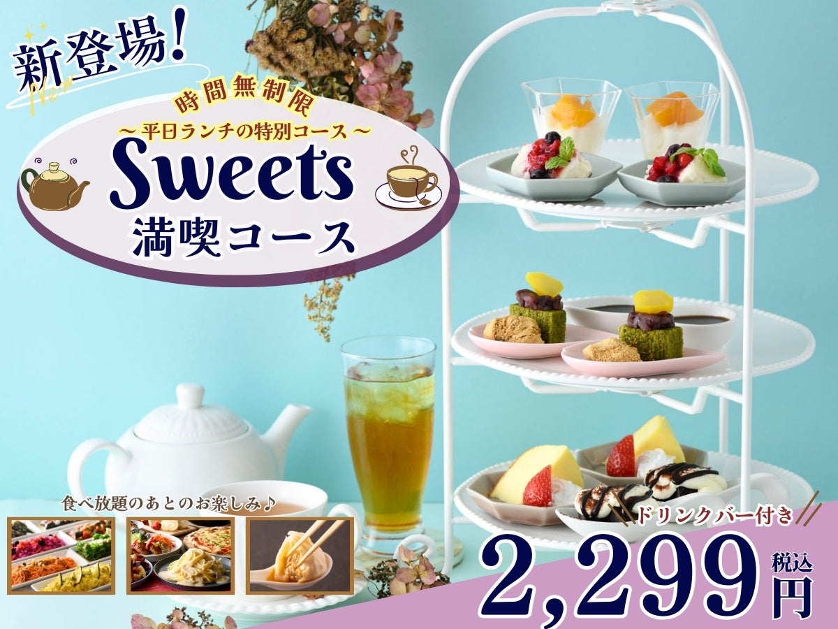 この度、2024年10月10日(木)より、平日ランチ限定にて、和洋中のごちそうとともにスイーツプレートが楽しめる!とってもお得な『スイーツ満喫コース』が新登場!