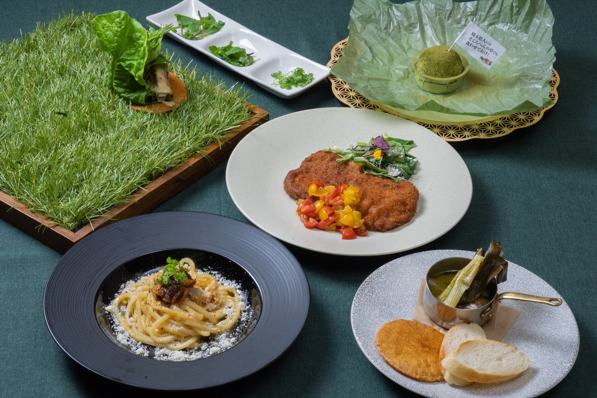 映画公開を記念したディス&郷土愛あふれる期間限定の特別コース料理。全5品のコースメニューは、埼玉県が誇る全国出荷数上位の食材を使用。「そこらへんの草の生春巻き」や「灼熱の熊谷アヒージョ」等、ユニークなメニュー名と共に埼玉県の魅力を発信する内容になっています。ご宿泊者さま向けのディナーコース及び日帰りのお客さまへのランチコースとして提供します。