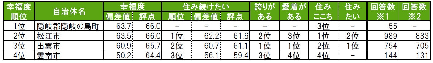 - 「いい部屋ネット 街の幸福度ランキング2022<島根県版>」 主なポイント