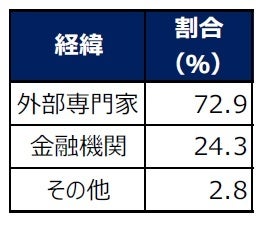 「第三者支援専門家」を依頼された経緯を尋ねると、「外部専門家」からの依頼が72.9%と最も高く、次いで「金融機関」からの依頼が24.3%、「その他」が2.8%となった。「その他」は中小企業活性化協議会(以下、協議会)などがあった。GLで、協議会では取り扱いのなかった廃業型私的整理が新たに設けられたため、協議会で進めていた案件が、GLの廃業型私的整理に移行したケースなども聞かれた。