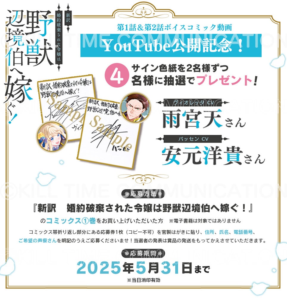 発売即重版!ブリーゼコミックス『新訳 婚約破棄された令嬢は野獣辺境伯へ嫁ぐ!1』【CV:雨宮天/安元洋貴】23万回再生突破!アニメ化要望コメント殺到のボイスコミック動画も好評公開中