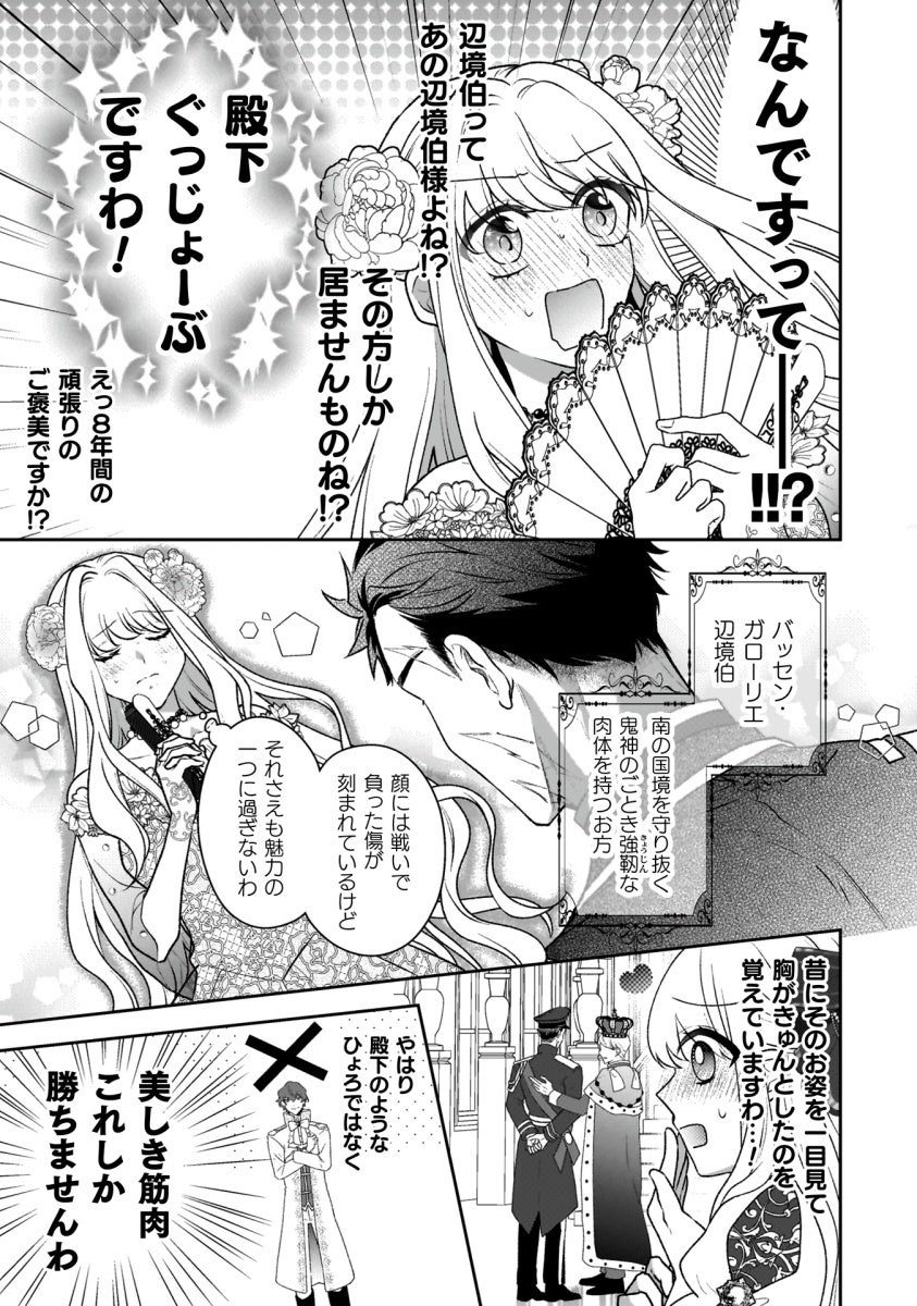 無実の罪で婚約破棄された公爵令嬢ヴィオレッタ。さらに、野獣と噂される辺境伯バッセンとの結婚を命じられるが、筋骨隆々な男性が好みな彼女は大喜びで辺境伯に嫁ごうとする!