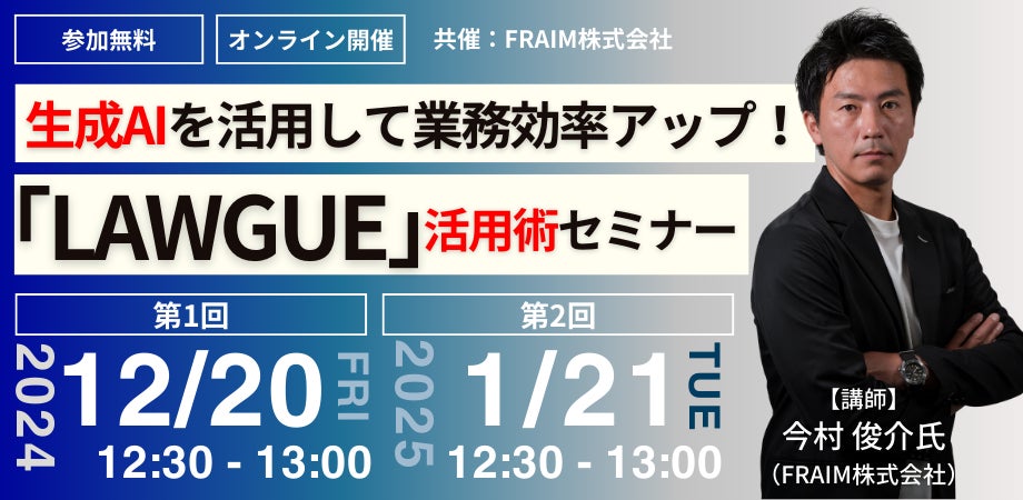 【2024年12月より開催|無料セミナー】「生成AIを活用して業務効率アップ!『LAWGUE』活用術セミナー」開催決定!