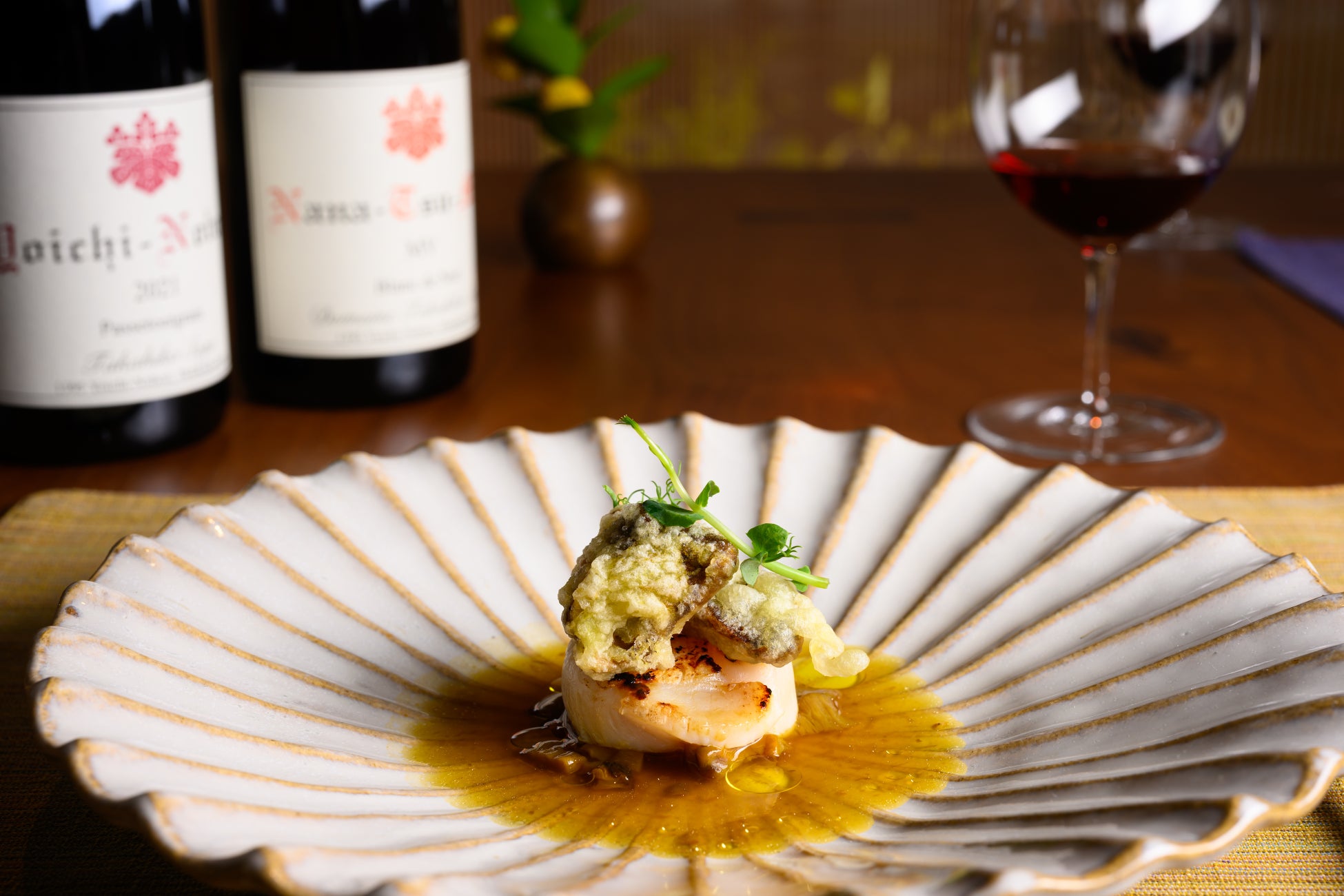 隣町、余市のドメーヌ・タカヒコの銘柄ワインをコース中に1杯盛り込んだ限定ペアリングもご用意しております。収穫の実りを食するローカルガストロノミーをお愉しみ下さい。