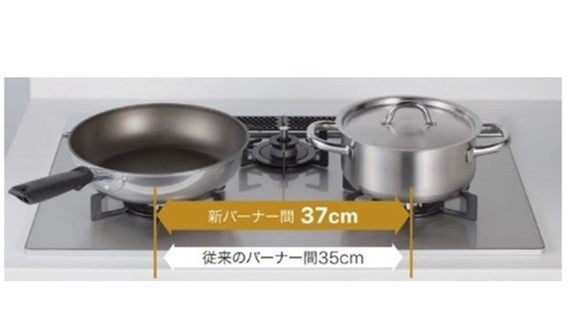 ■バーナー間の距離を従来品より広げることで、調理時の利便性を向上