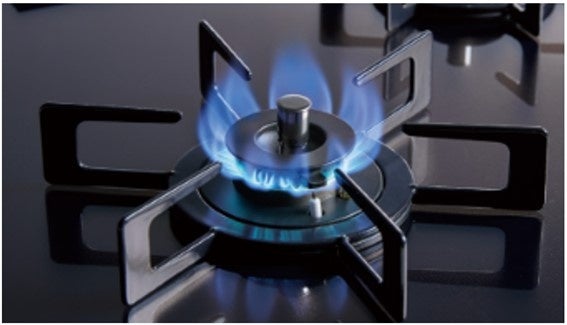 天板のバーナー間の距離を、従来品と比べ天板のサイズ75㎝の場合で2㎝、天板サイズ60㎝の場合で3㎝拡大。