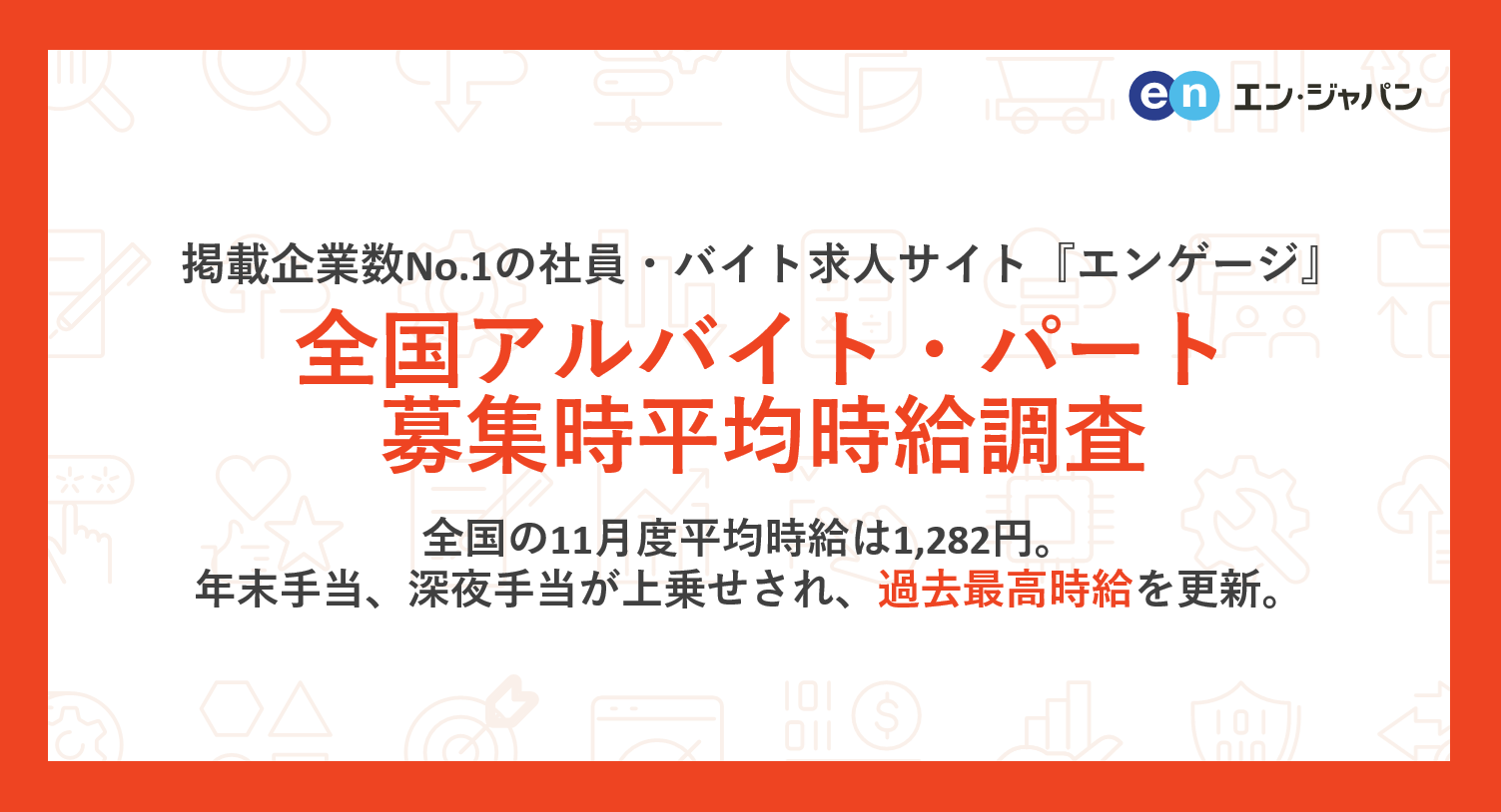 掲載企業数No.1の社員・バイト求人サイト『エンゲージ』アルバイト・パート募集時平均時給調査(2023年11月度)