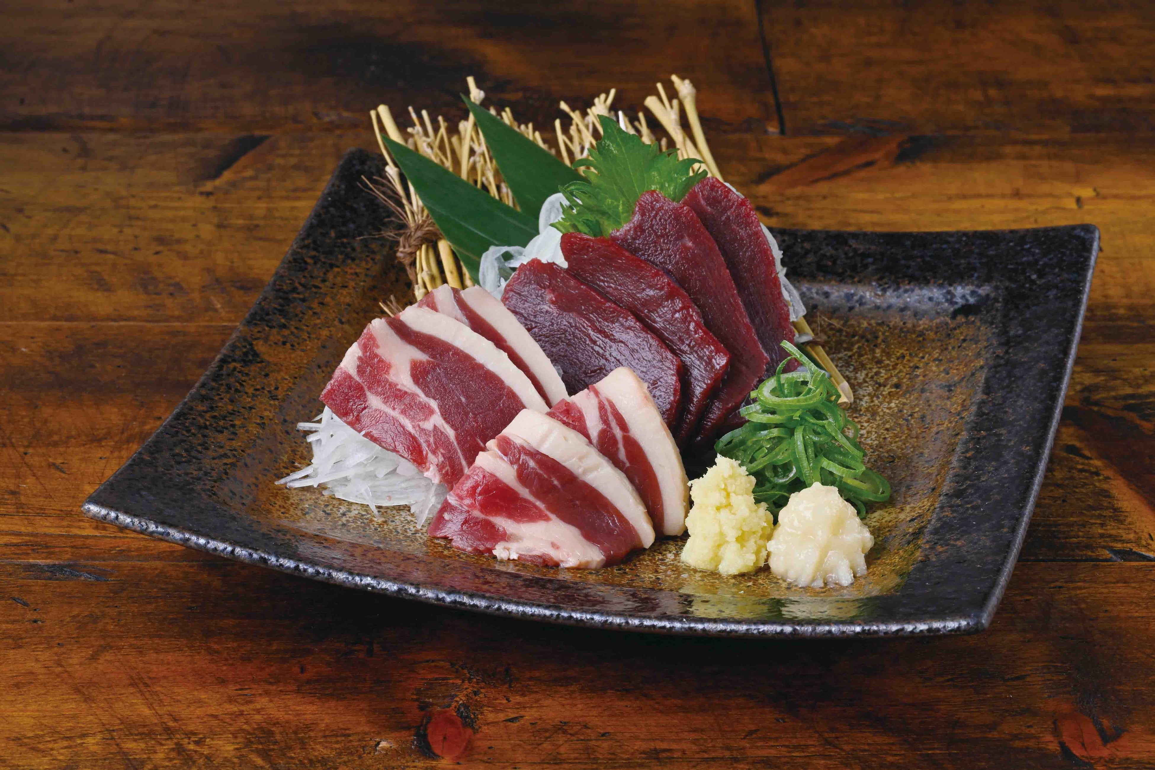 【自慢の逸品】馬刺し二種盛り合せ 希少!!ロースえんがわと赤身