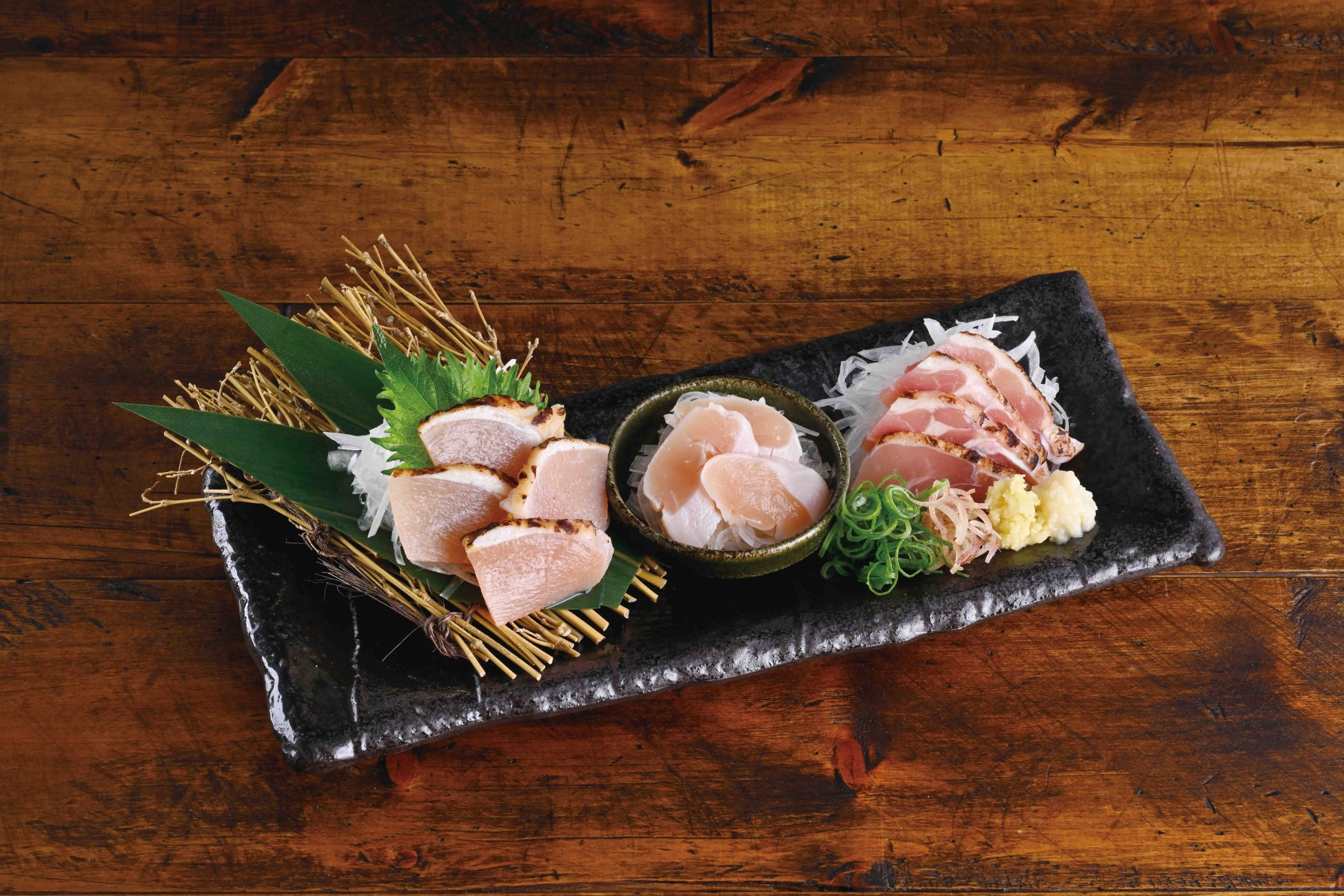 部位ごとに異なる三種の地どりの旨みをご堪能いただけます。※当社の冷製地どり料理は【塩せき熟成製造】により非加熱食肉製品の規格基準をクリアした製品を使用しております。