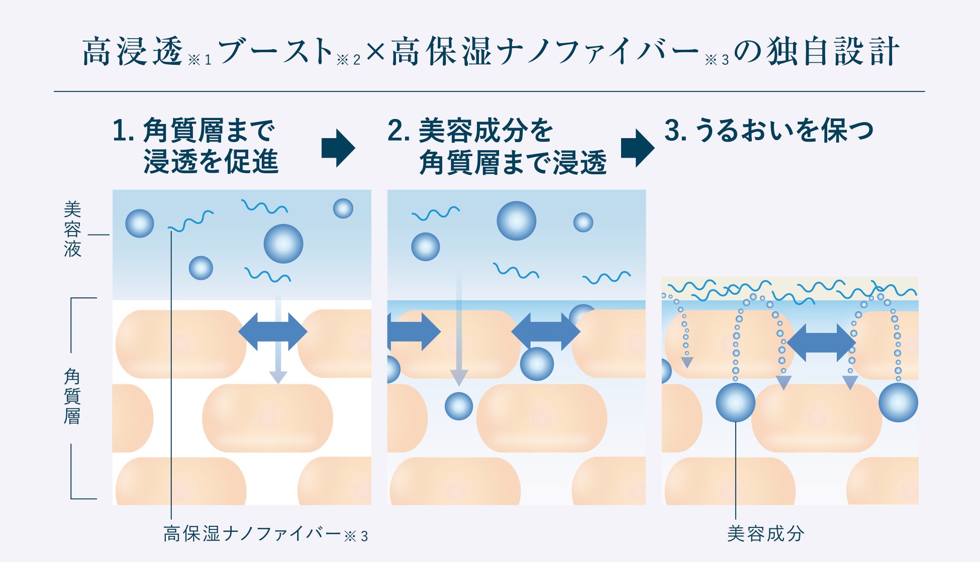 ・美容成分を角質層まで浸透させる「高浸透※1ブースト※2」と植物由来の保湿成分「高保湿ナノファイバー(ELLEX-C)」※3の独自設計。